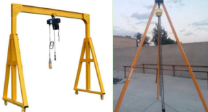 相同之處:龍門吊和起重三腳架都可以搭配手拉葫蘆、電動葫蘆來吊運重物,并且都可以保持較強的承載力和較高的穩定性。